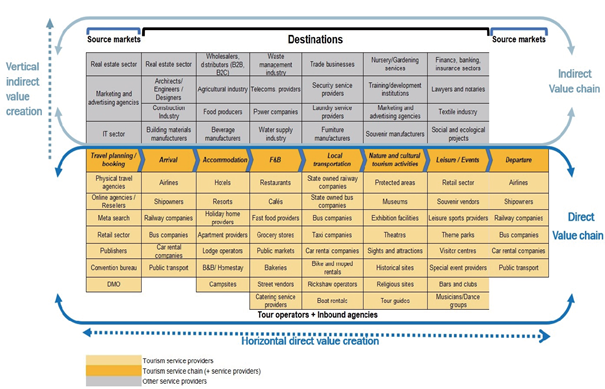 The tourism industry is a vast complex industry covering a variety of sectors and connecting with multiple other industries and value chains as we can see in the following table: