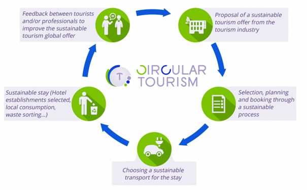Turizmo sektoriaus žiediškumo potencialas priklauso nuo vietovės strategijos ir infrastruktūros. Be to, svetingumo paslaugų teikėjai ir turistai turi būti pasirengę bendradarbiauti siekiant pagrindinių žiedinio perėjimo tikslų. Tai reiškia, kad integracija, komunikacija ir dalyvavimas yra pagrindiniai žiedinio perėjimo šiame sektoriuje elementai.